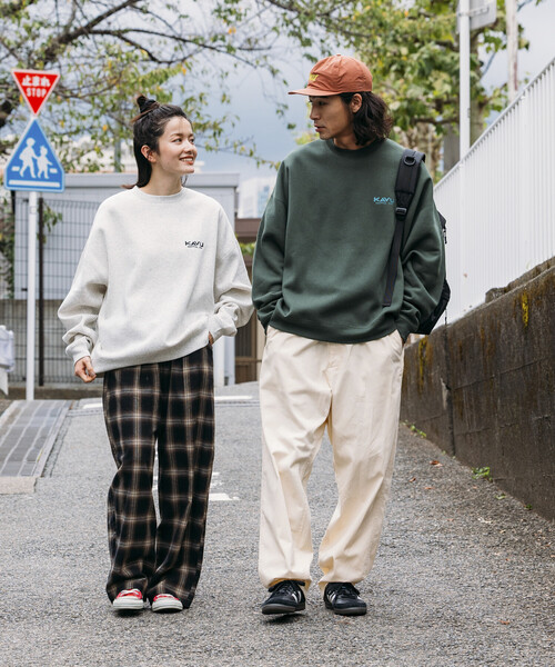 トレーナー スウェット 限定展開 KAVU×FREAK'S STORE/カブ― 別注 バック刺繍デザイン クルーネック スウェット / Klear