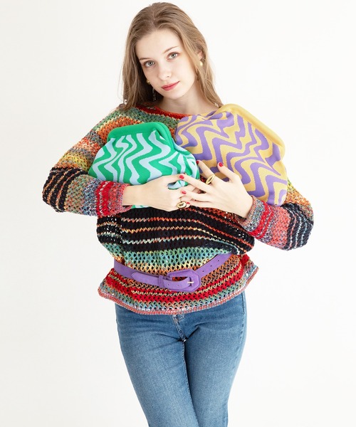 クラッチバッグ パーティーバッグ ジグザグ柄がま口クラッチバッグ/バッグインポーチ レディース