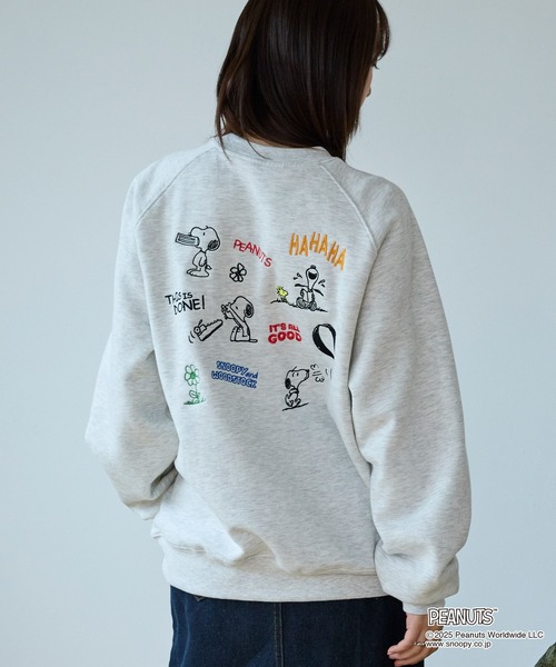 トレーナー スウェット 「PEANUTS SNOOPY」別注 ピーナッツ スヌーピー ヴィンテージライク 刺繍プリント オーバーサイズスウェット レデ