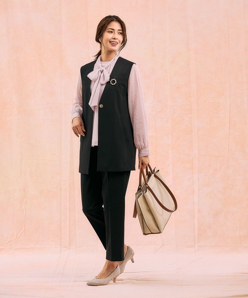 キーワード:スラックス パンツ レディース ウエストゴム センタープレス テーパード フルレングス レギュラー 洗える 無地 キレイめ ナチュラル ビジネス ベーシック 夏 記念日 春 新生活