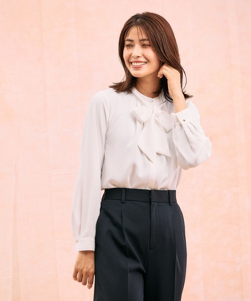 キーワード:ブラウス シャツ レディース ボウタイ 静電気防止 長袖 無地 キレイめ ナチュラル ベーシック 夏 春 卒業式 入園式 入学式