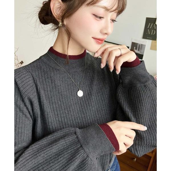 ニット セーター ボトルネックレイヤード風配色リブニットプルオーバー レディース