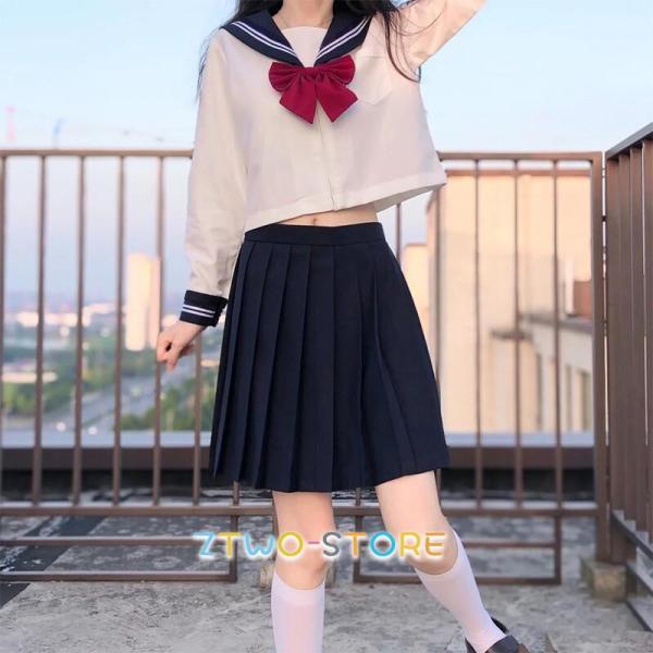女子高生 制服 セーラー服 女子高校生 学生服 長袖 セットアップ 上下セット JK制服 文化祭 学園祭 可愛い 蝶ネクタイ付き ハロウィン イベント