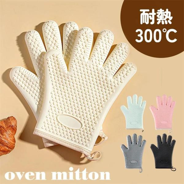 鍋つかみ ミトン 両手用 シリコン 300℃ 耐熱ミトン かわいい オーブンミトン 耐熱 熱くない 可愛い シリコン 5本指 キッチン キッチンミトン 手袋 電子レンジ