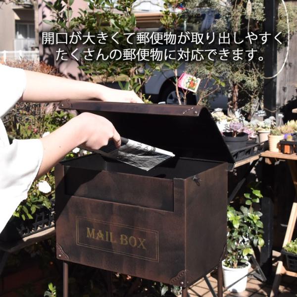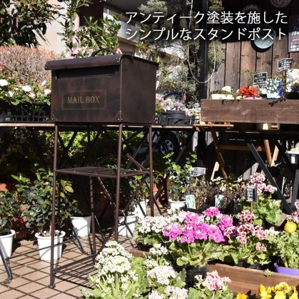 郵便ポスト 郵便受け スタンドポスト 置き型 アンティークブラウン メールボックス 棚付き ルガーノ