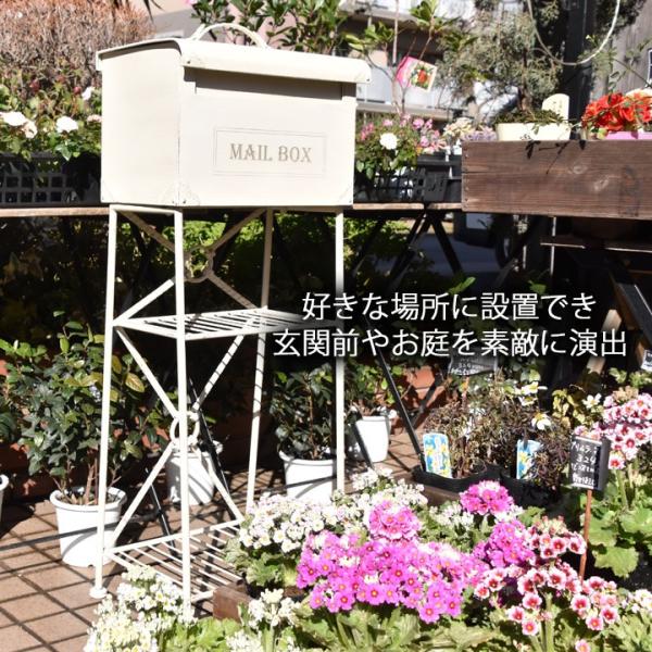 郵便ポスト 郵便受け スタンドポスト 置き型 アンティークホワイト メールボックス 棚付き フルール