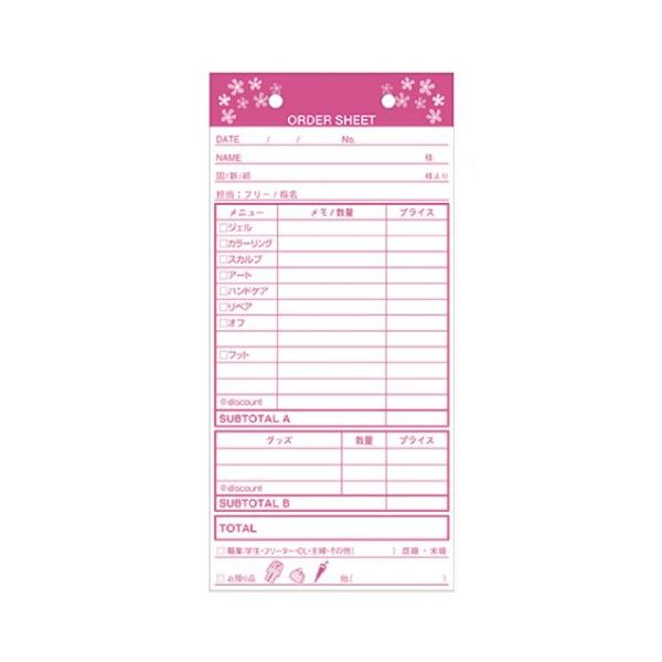 [ネイルサロン顧客管理]ネイルサロン伝票/オーダーシート(ピンク)【CAST】100枚つづり