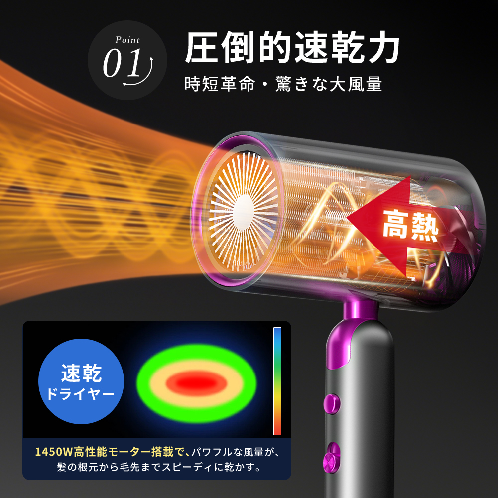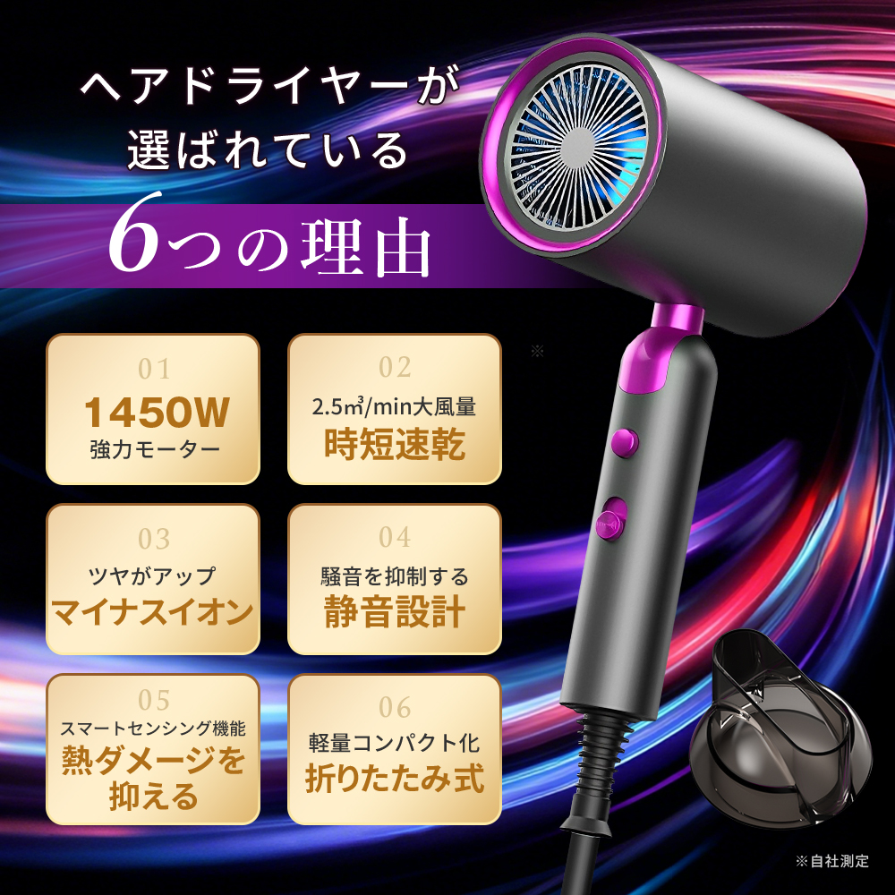 【 ドライヤー 800円OFF中|2026年新作】 ヘアドライヤー 折りたたみ マイナスイオン 2.58億個 温度&風量調節 大風量 1450W 軽量 306g 静音 50dB