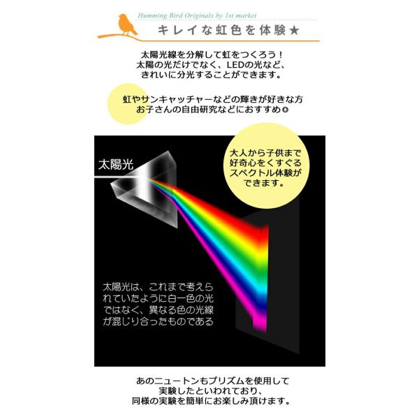 三角プリズム 長さ10cm スペクトル 光の実験 分光 光学ガラス 自由研究 実験 太陽光 虹 理科 屈折 反射 科学 物理