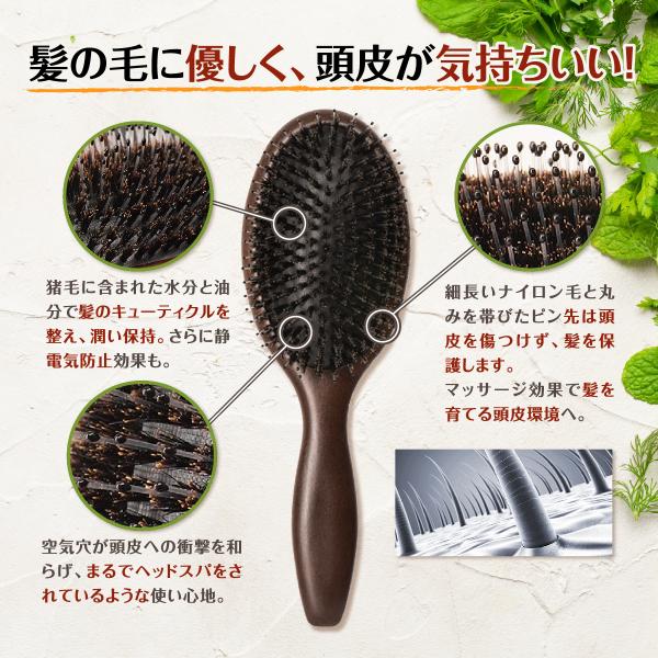 ■猪毛に含まれた水分と油分で髪のキューティクルを整え、静電気を防止しながら、まとまりやすい美しい髪に仕上げます。