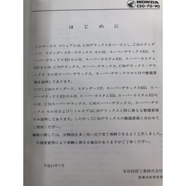 スーパーカブ50(C50/C70/HA02)/70/90/カブ/リトルカブ ホンダ サービスマニュアル 整備書 純正品 受注生産品 新品 60GB400