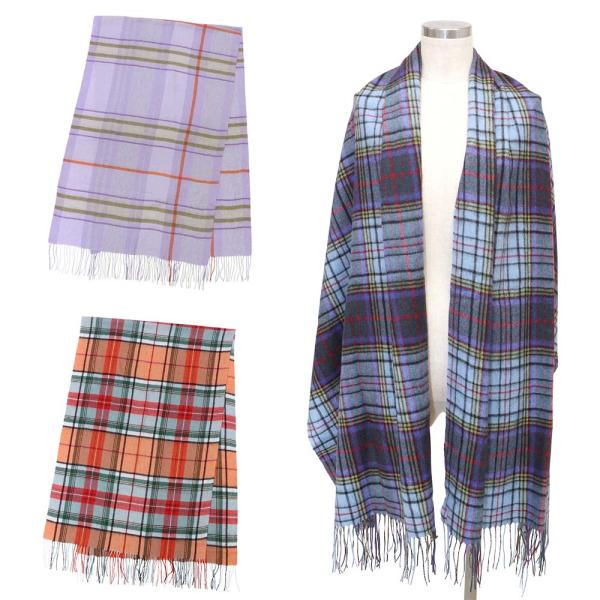 カシミヤ100% ストール 大判サイズ 約192cm x 約65cm 薄手 チェック柄 ふんわり 柔らか マフラー ブランケット メンズ レディース 43800013
