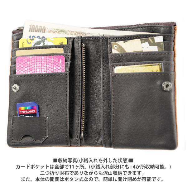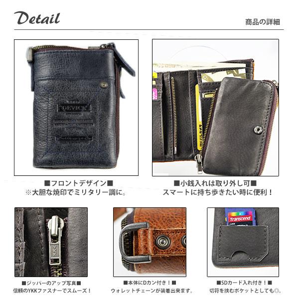 DEVICE Work (デバイス) ヴィンテージ 二つ折り 財布■常に大人のヴィンテージカジュアルスタイルをリードするアイテムを提供したいという気持ちが込められた「DEVICE」の二つ折り財布。表面の生地には「牛革」を使用。DEVICE workの特徴であるブランド型押しに飾りステッチが表面に施されています。シンプルな財布も良いけど、いつもと少し雰囲気の違うミリタリーテイストかつ、本格的な本革を使用した折財布に仕上がっています 。■本体サイズ : タテ 約12.5cm/ ヨコ 約9cm サイフ厚み : 約3cm 仕様: 札入れ(ポケット)×1ヶ所ファスナー札入れ(ポケット)×1ヶ所小銭入れ×1ヶ所(仕切り無)カードポケット×11ヶ所(小銭入れ部分+4ヶ所)切符(SDカード)入れ×1ヶ所 重量 約148g 素材 本革 カラー:ブラウン・グレー・ダークカーキ・ネイビー 注意事項:本革を使用しているため、入荷時期により本革部分の自然傷、色合いが画像と多少異なる場合がございます。これは自然の素材ならではのものですのでご理解の上、ご購入願います。