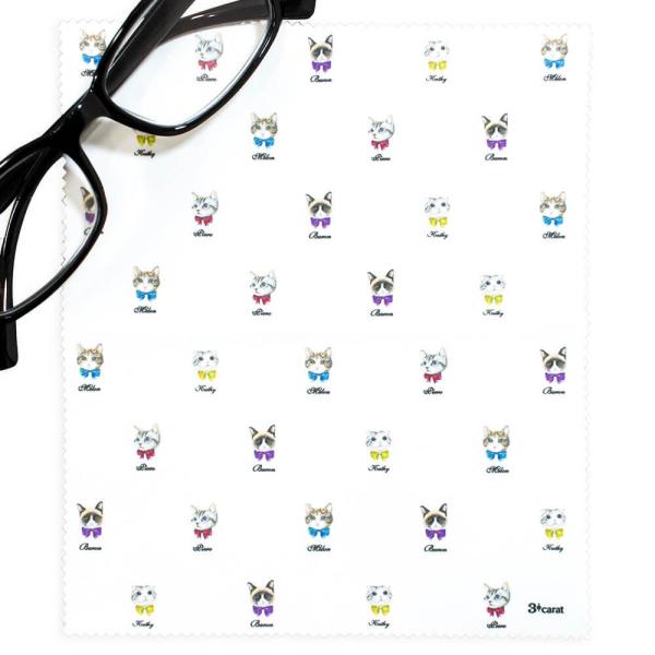 曇り止めクロス くもり止め 王様のくもり止め おめかしキャット ホワイト クリーニングクロス 湯気 湿気対策 梅雨 3carat メガネ 眼鏡