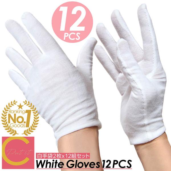【 送料無料 】白手袋 12組セット Mサイズ 男女兼用 手袋 コットン手袋 コットン 綿 綿100% 日よけ 就寝 演技 指揮者 手品 ドリンク 新居 貴重品 アクセサリー