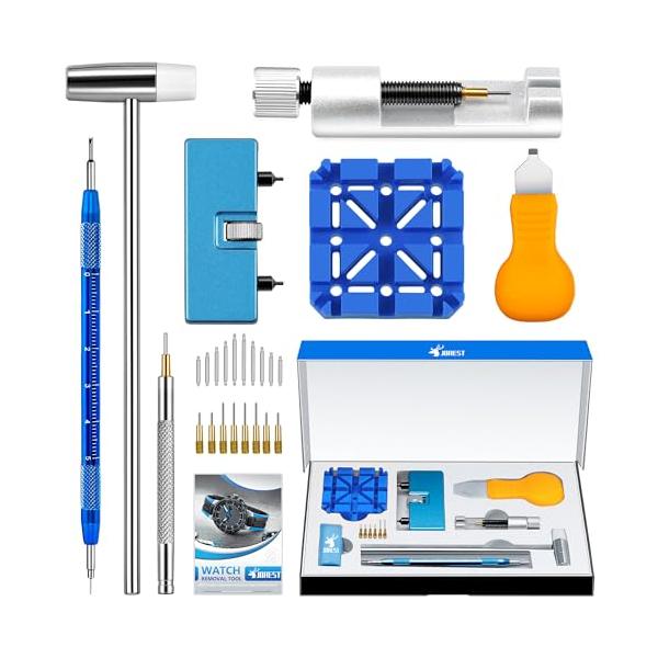 JOREST 腕時計修理工具セット、時計 電池交換、腕時計ベルト工具、でんち交換 キット、 時計バンド/ベルト 調整工具、 ピン抜き工具、腕時計の裏蓋オープナー、