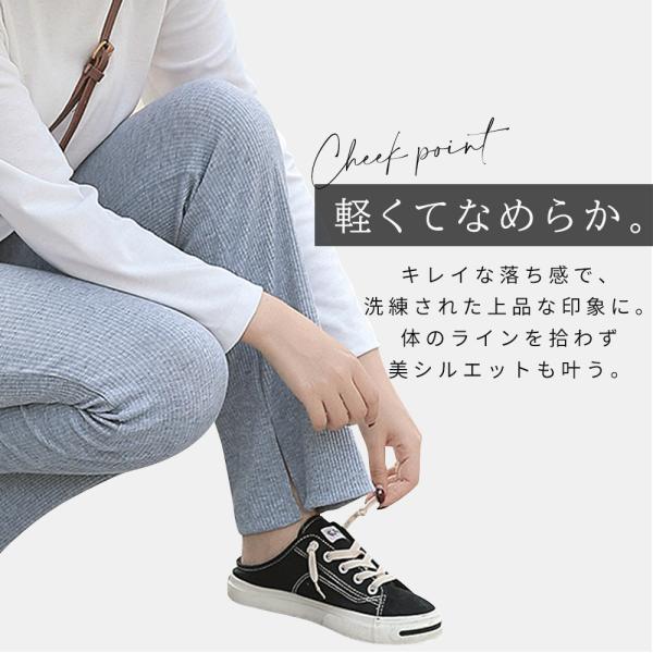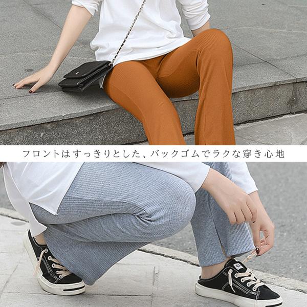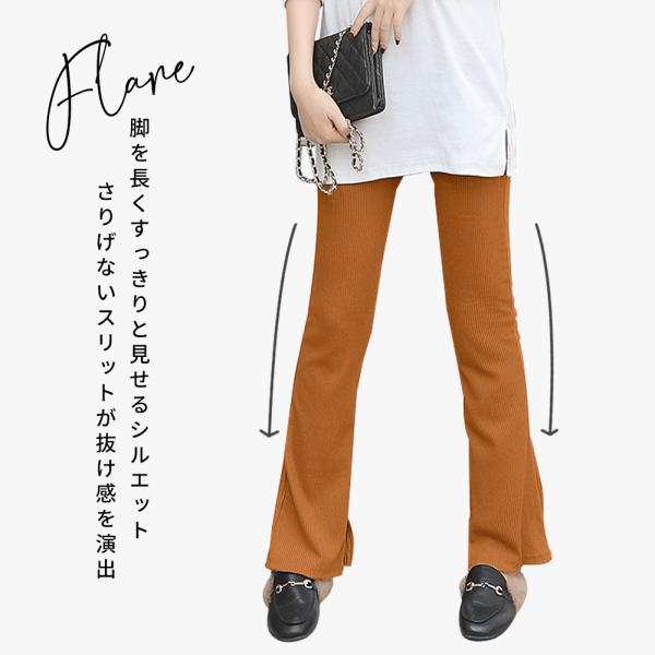 脚長美脚を叶えるスリット入り楽ちんフレアパンツ