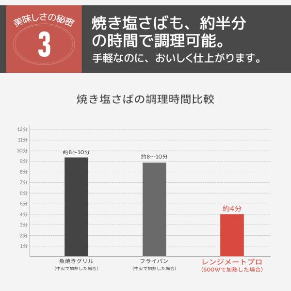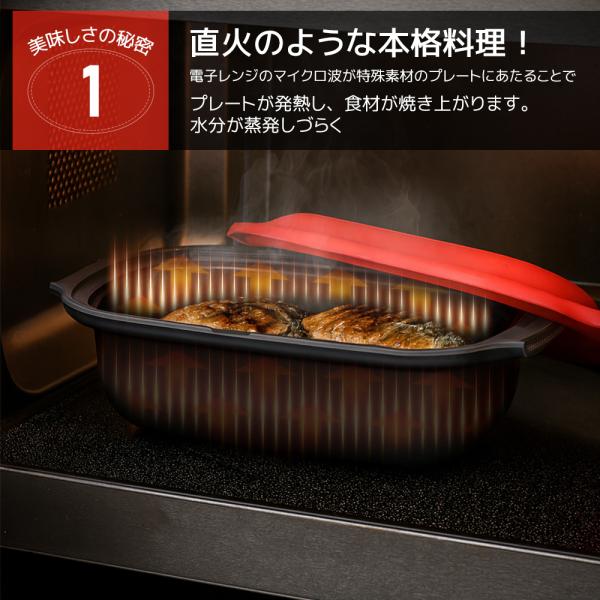 食材を入れてレンジで温めるだけ!「焼く、蒸す、煮る、茹でる、炊く、炒める、揚げる、温め直し」の8役をこなす魔法の調理器具です。直火のような焼き目がつくので、焼き魚もふっくらジューシーに仕上がります。