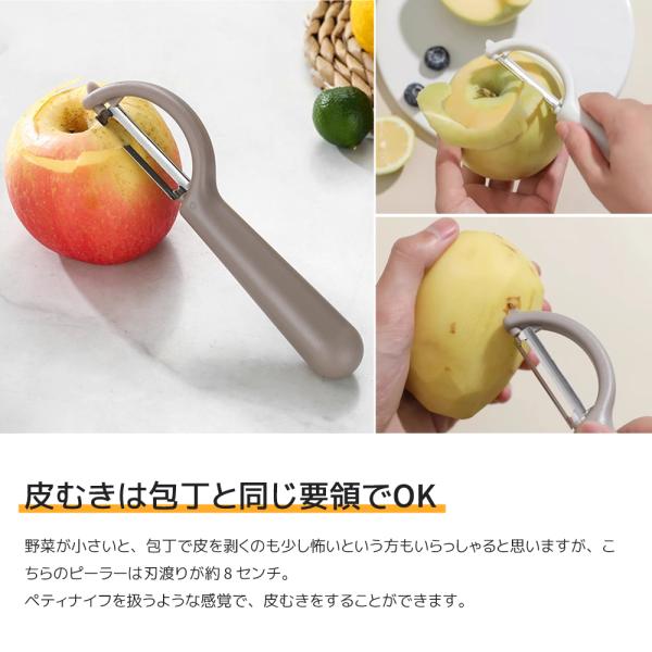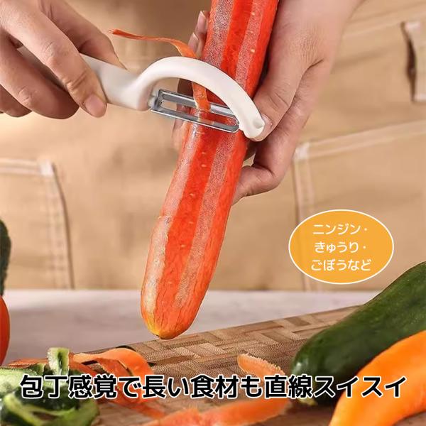 ステンレス製の鋭い刃がスムーズに野菜や果物の皮をむき、時短調理を実現。