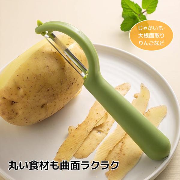 握りやすい縦型デザインで皮むきがラクになるピーラー。