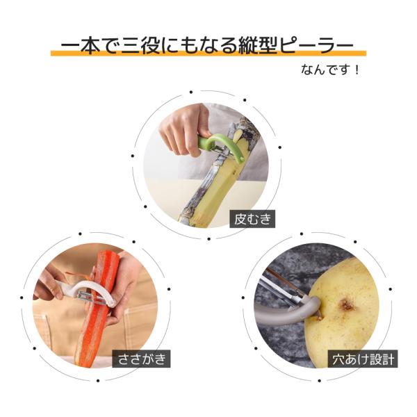 縦型ピーラー ステンレス刃 皮むき器 野菜ピーラー ジャガイモ ニンジン 大根 果物対応 マルチキッチンツール シンプル おしゃれ 持ちやすい 滑り止め付き