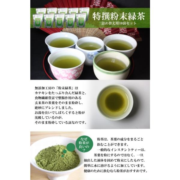 特撰 粉末 緑茶( 詰め替え用 10袋 セット )くら寿司 無添加 お茶 カテキン 茶葉 玄米 ブレンド インスタント 爆買