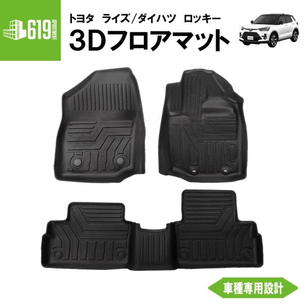 ★ 【ブラック】 3D フロアマット ライズ ロッキー 3枚 運転席 助手席 2列目 トヨタ ダイハツ 200系 TPE 内装 立体 車内 汚れ防止 防水 専用設計 カーマット 黒