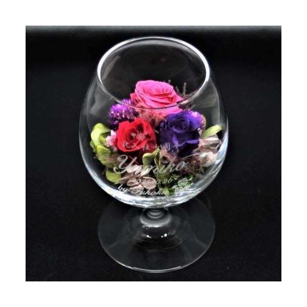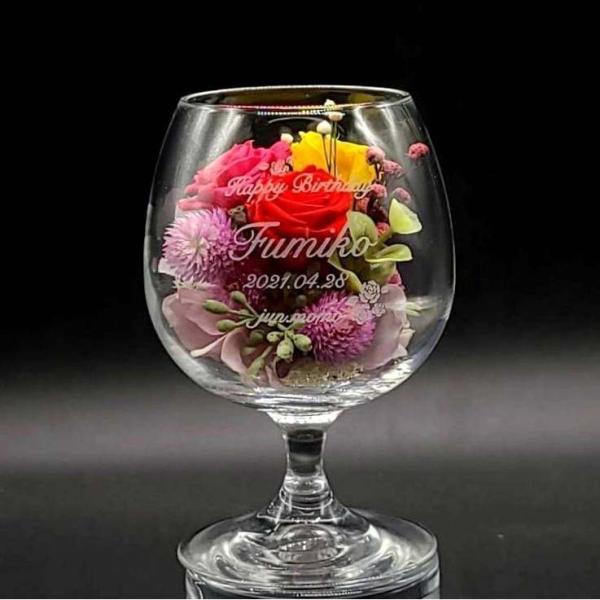 プリザーブドフラワー ワイングラス入り 名入れ デザイン彫刻 化粧箱入り 母の日 誕生日 記念品 ギフト プレゼント