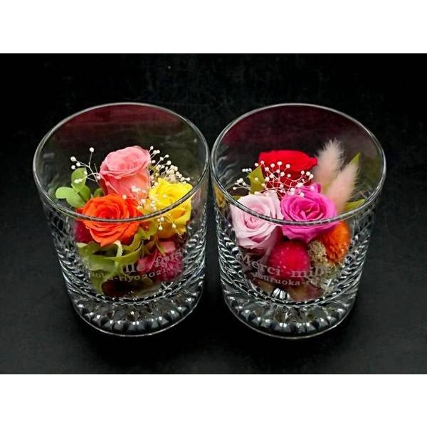 プリザーブドフラワー ロックグラス入り 名入れ デザイン彫刻 母の日 誕生日 記念品 お祝い ギフト プレゼント