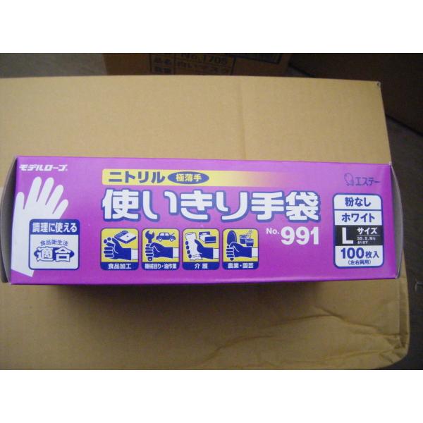 C2【新潟定#757ヨ030129-1W1(134)】ニトリル ゴム手袋 エステー No.991 Lサイズ モデルロープ 粉無し ホワイト 100枚入 除菌