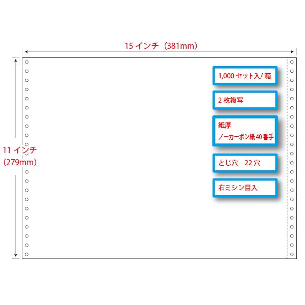 ストックフォーム 15×11インチ 2枚複写 2P 無地 白紙 1,000枚/箱 連続用紙