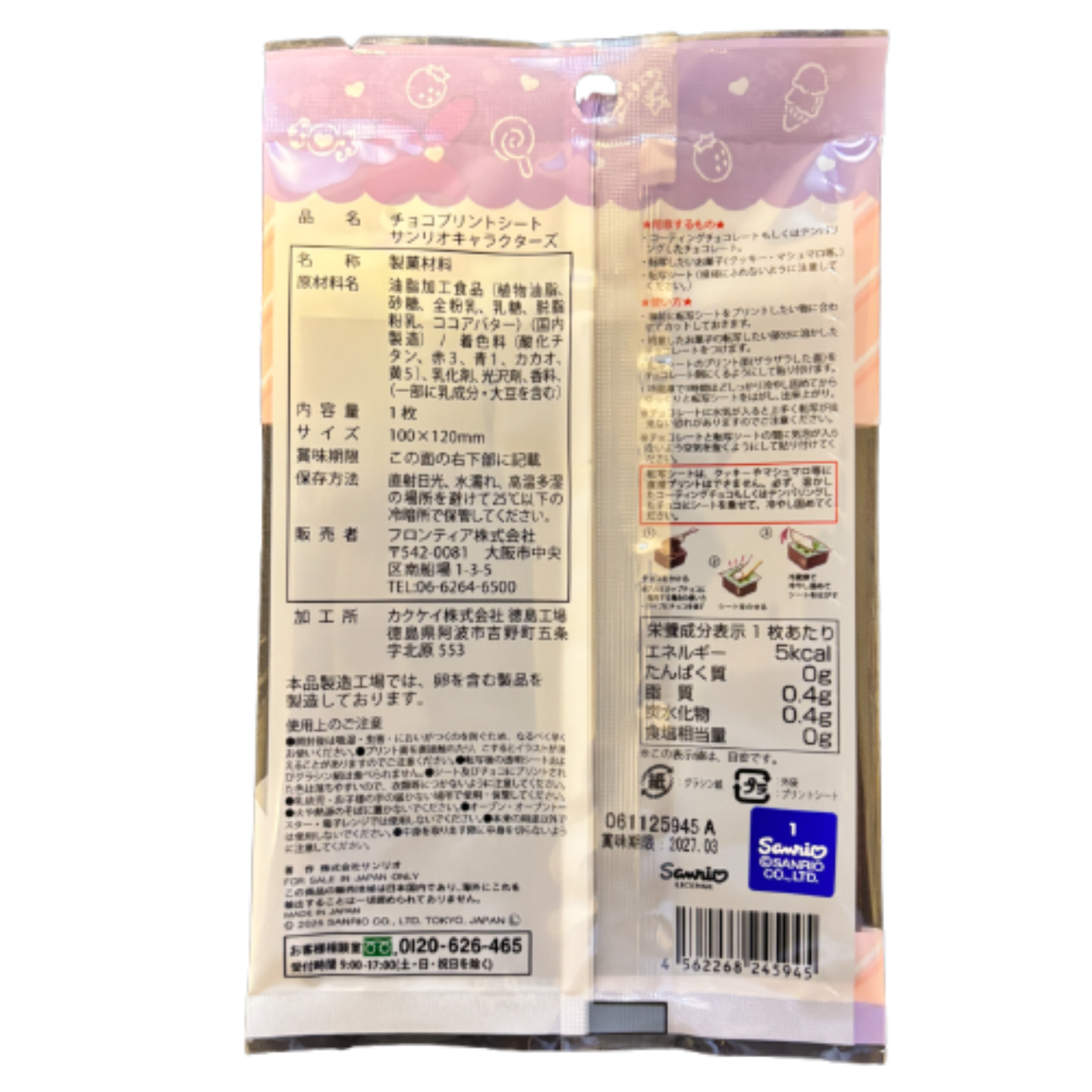 チョコプリントシート サンリオキャラクターズ2 チョコにプリントできる転写シート 福岡倉庫