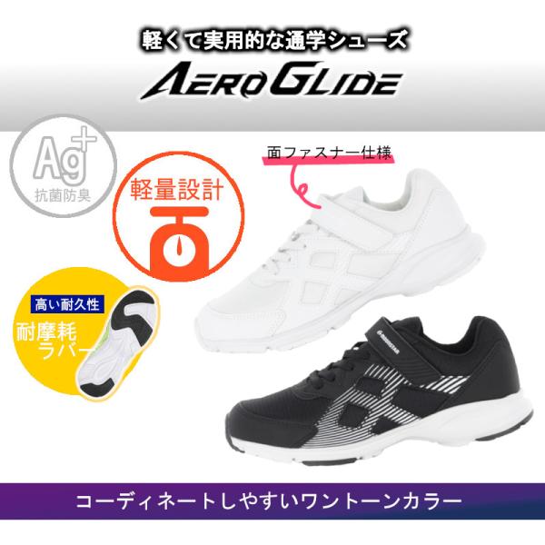 MOONSTAR ムーンスター AEROGLIDE エアログライド AG J001 キッズ ジュニア 通学靴 運動靴 マジックテープ スポーツ スニーカー シューズ ホワイト ブラック