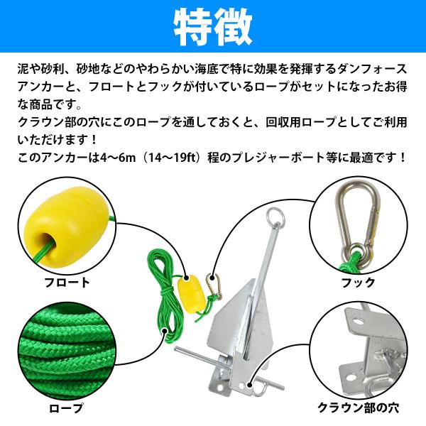『ロープ アンカー セット』ダウンフォースアンカー 5kg フロート/ロープ/フック付!ジェットスキー 船 カヌー 錨