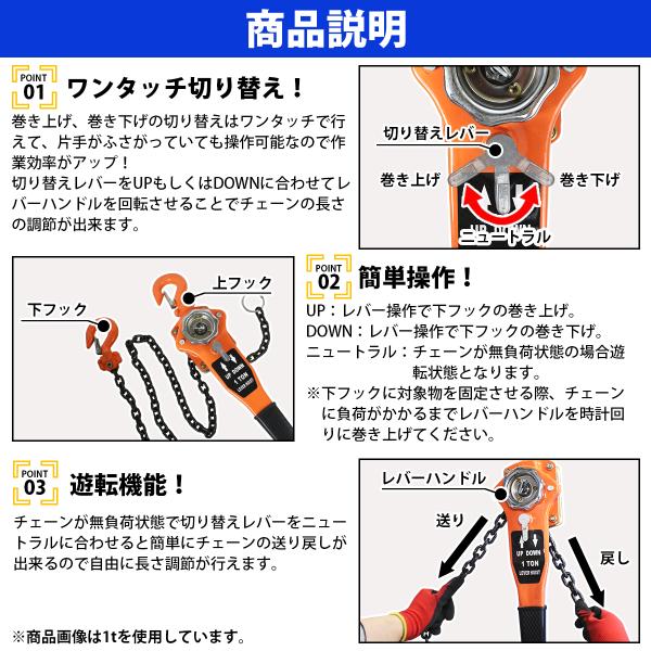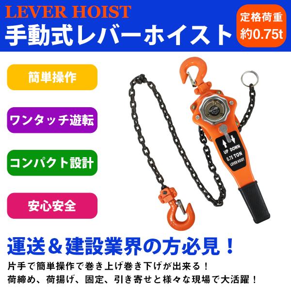 0.75t レバーホイスト 荷締機 レバー式 チェーン ブロック ガチャ ガッチャ レバー チェン ブロック 750KG ホイスト