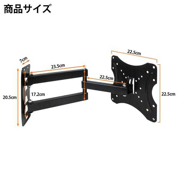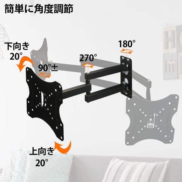 壁掛け テレビ モニター アーム 金具 スタンド 角度調整 14-42インチ 汎用 液晶 TV 首振り 上下 30度 黒 VESA規格 左右