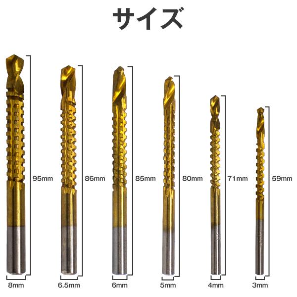 【送料220円】のこぎりドリル 3〜8mm 6本セット ドリル 刃 ビット 電動 インパクト ドライバー 木工ドリル 切削工具 木材加工 アルミ加工