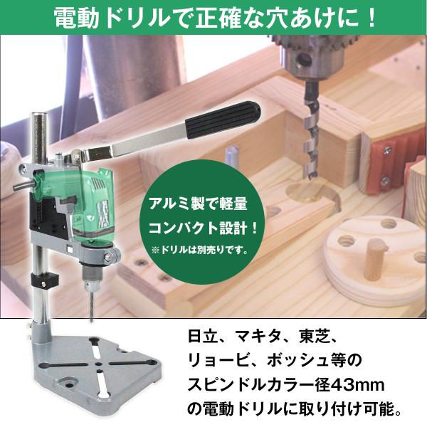 垂直 ドリルスタンド 43mm対応 アルミ製 穴あけ 電動 工具 ドリルホルダー DIY 日立 リョウビ マキタ ドリル