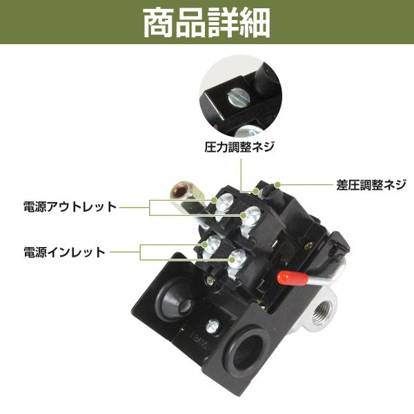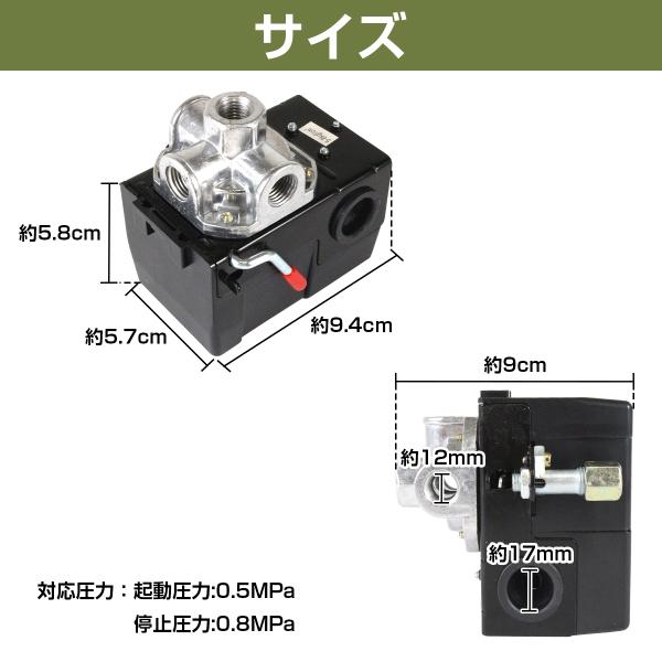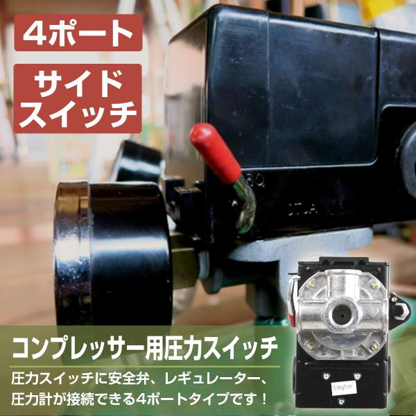 コンプレッサー 圧力スイッチ 4ポート サイドスイッチ 対応圧力 0.5Mpa 0.8Mpa エアー プレッシャースイッチ 100v 200v 220v