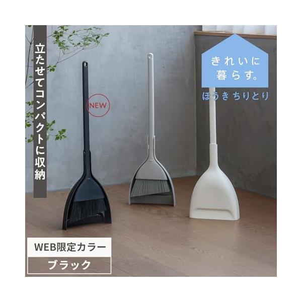 マーナ (marna) ほうき ちりとり セット (自立式/スリムでコンパクトに収納) 箒 塵取り (室内/屋外/ベランダ 玄関 掃除) ブラッ
