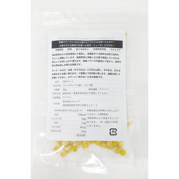 乾燥野菜 乾燥とうもろこし 粒カット品 30g 契約栽培 フリーズドライ製法 乾燥コーン 送料無料 仕送り 一人暮らし 常備菜 時短 お手軽 非常食 即席スープ