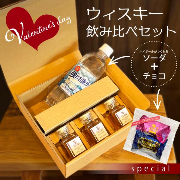 チョコ付き バレンタインデー 3種のウィスキー 中級コース ハイボール 飲み比べ ギフトセット ソーダ お酒 カード ミニボトル 彼氏に 旦那様に ウィスキー好き