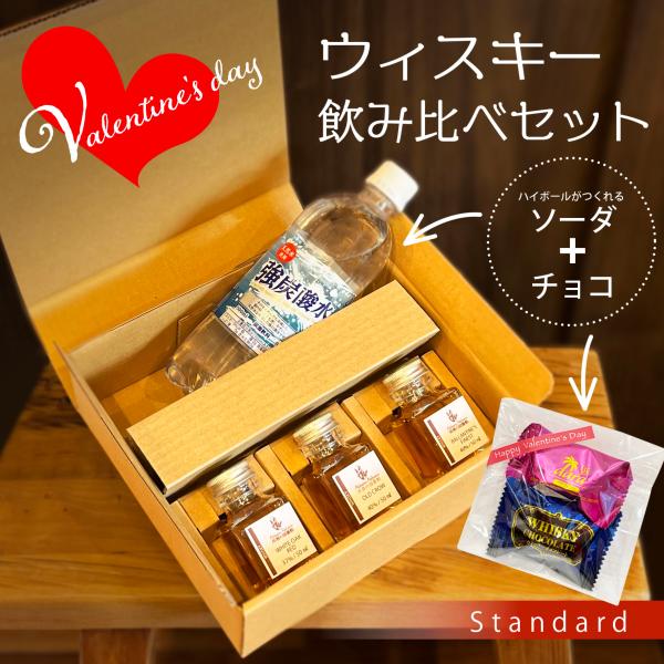 チョコ付き バレンタインデー 3種のウィスキー 初級コース ハイボール 飲み比べ ギフトセット ソーダ お酒 カード ミニボトル 彼氏に 旦那様に ウィスキー好き