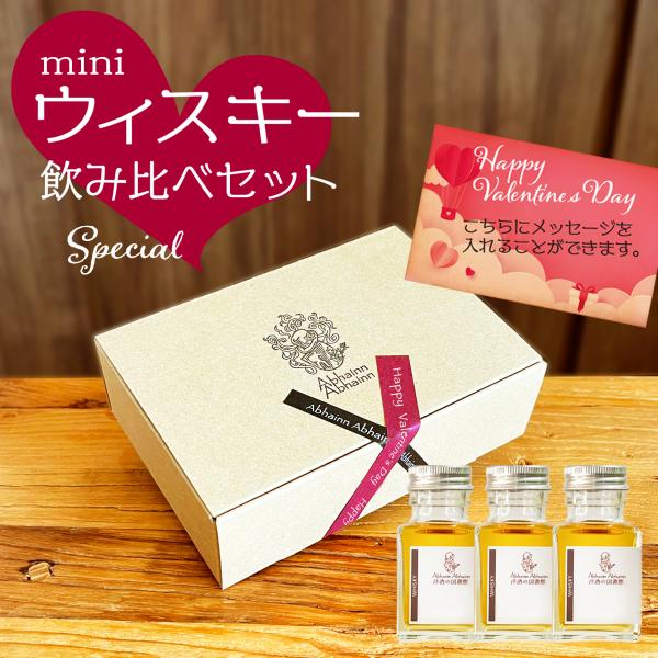 バレンタインデー 3種のウィスキー 中級コース ミニボックス 飲み比べギフトセット 小瓶3本 バレンタイン メッセージカード mini 彼氏 旦那様に ウィスキー好き