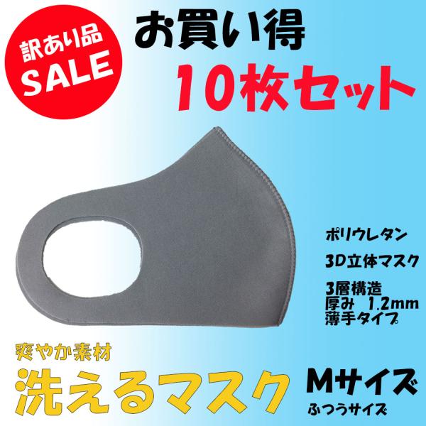 洗えるマスク グレー Mサイズ 薄手タイプ 10枚セット 3層構造 柔らかマスク