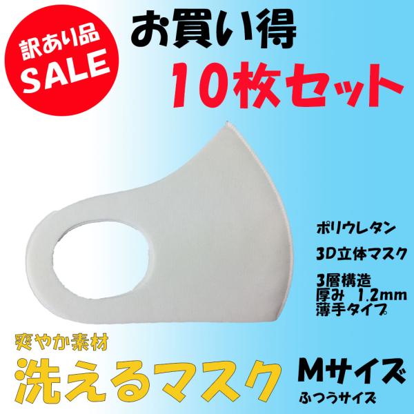洗えるマスク 白 Mサイズ 薄手タイプ 普通サイズ 10枚セット 3層構造 柔らかマスク