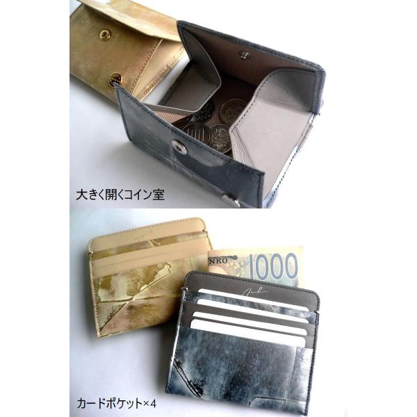 ARUKAN アルカン 財布 折り財布 箔加工 レザー ボッシュ 1412-714 シルバー ゴールド