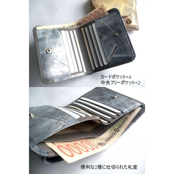 ARUKAN アルカン 財布 二つ折り財布 箔加工 レザー ボッシュ 1416-666 シルバー ゴールド グレー ブラック