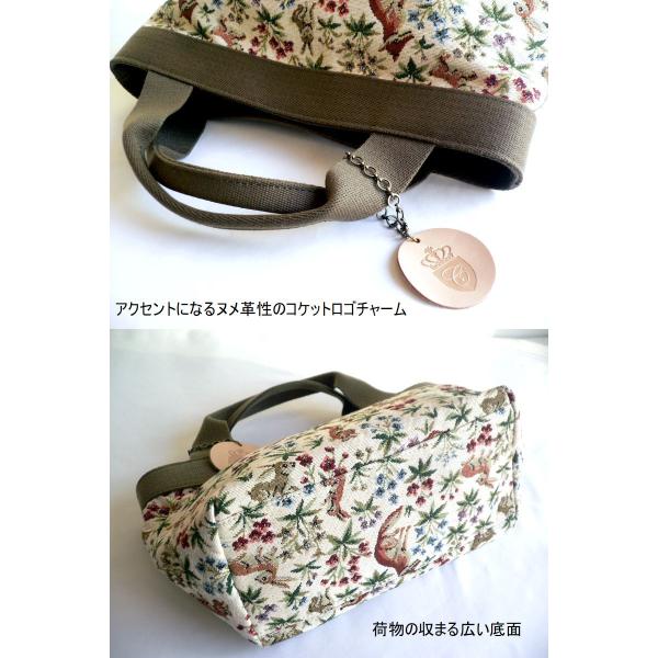 coquette コケット バッグ ゴブラン デイリー トートバッグ Sサイズ B0821 キツネ ウサギ カーキ