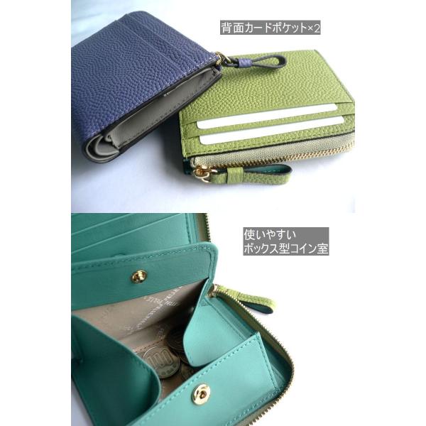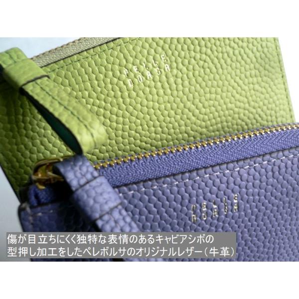 PELLE BORSA ペレボルサ 折り財布 キャビアシボ 型押しレザー コンパクト L字ファスナー5444 Playful Goods パープル グリーン グレー トープ ベージュ イエロー